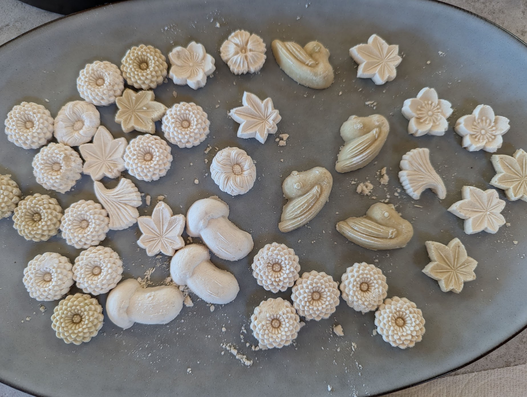One of the students ordered 500 gr of wasanbon, so we used kashigata molds to make higashi to take home as well.